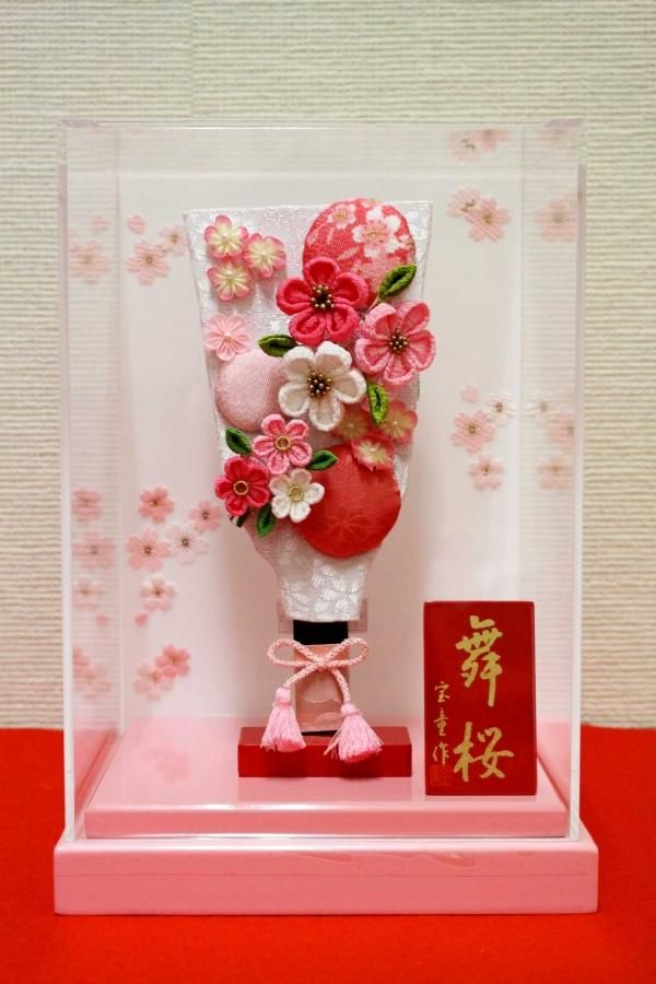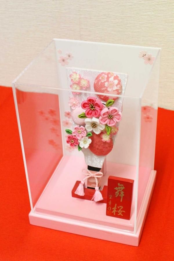 羽子板 7号 美桜カンザシ ピンク アクリルケース一式[DC-3577]
