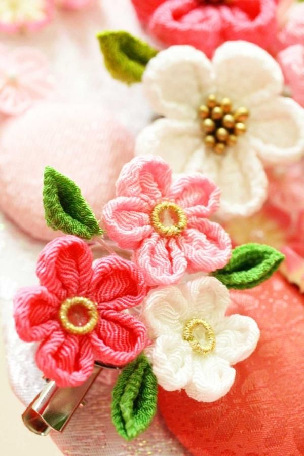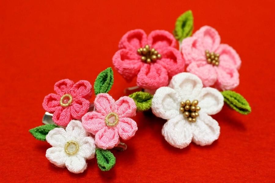 つまみ細工の一部は髪飾りやブローチとしてもお使いいただけます。