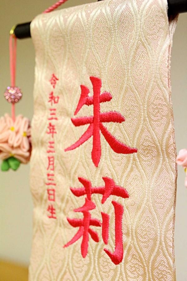 お子様のお名前と生年月日を丁寧に刺繍いたします。