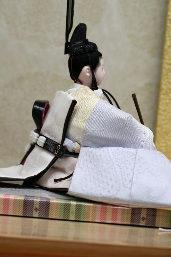 毛バタキと白手袋のお手入れセットを進呈します。お雛様を飾ったりするときは、お顔は直接触らないで手袋をご使用下さい。収納するときは、毛バタキで十分ほこりを払ってからおしまい下さい。