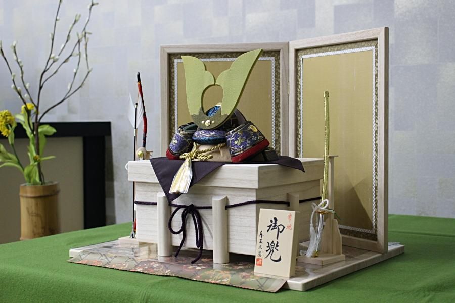本ページの五月人形をご購入いただきますと、ご購入特典として、お手入れ用の「毛バタキ」と「手袋」、端午の節句をモチーフにした「オルゴール付き写真立て」、節句パーティーで五月人形と一緒に着飾れる「鉢巻&陣羽織」を進呈しております。特典について詳しくはこちら