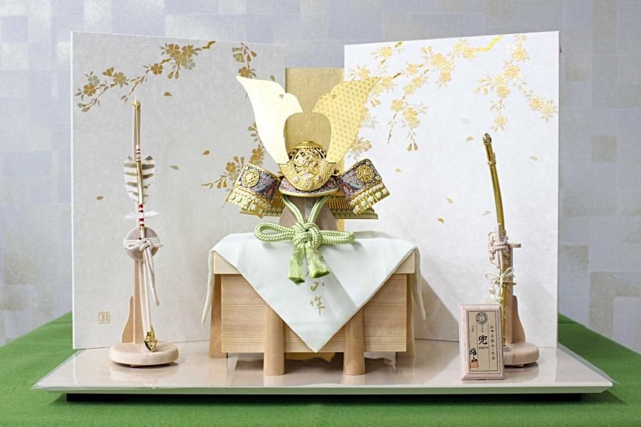 本ページの五月人形をご購入いただきますと、ご購入特典として、お手入れ用の「毛バタキ」と「手袋」、端午の節句をモチーフにした「オルゴール付き写真立て」、節句パーティーで五月人形と一緒に着飾れる「鉢巻&陣羽織」を進呈しております。特典について詳しくはこちら