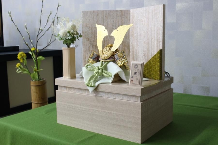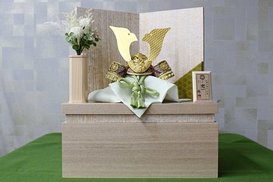 毛バタキと白手袋のお手入れセットを進呈します。五月人形を飾ったりするときは、手袋をご使用下さい。収納するときは、毛バタキで十分ほこりを払ってからおしまい下さい。