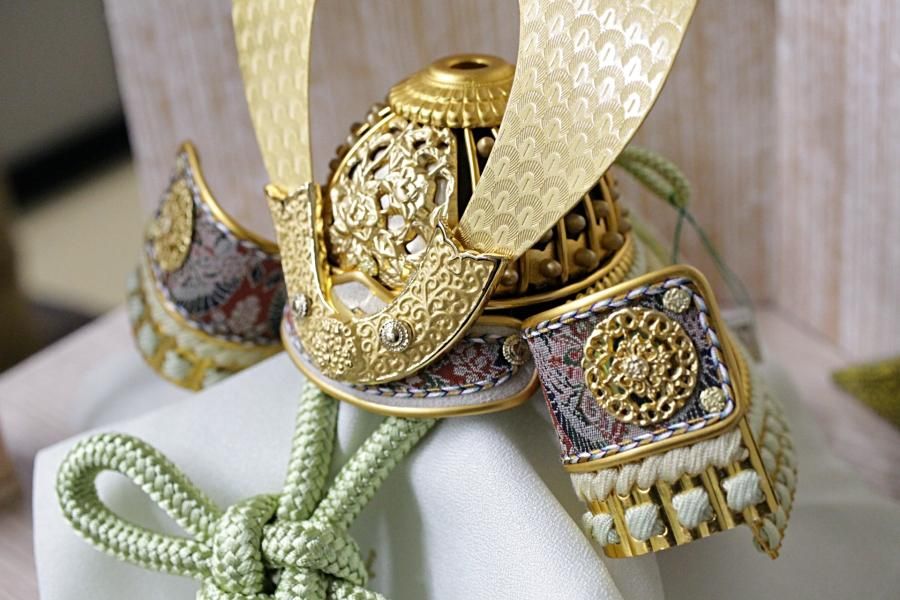 本ページの五月人形をご購入いただきますと、ご購入特典として、お手入れ用の「毛バタキ」と「手袋」、端午の節句をモチーフにした「オルゴール付き写真立て」、節句パーティーで五月人形と一緒に着飾れる「鉢巻&陣羽織」を進呈しております。特典について詳しくはこちら
