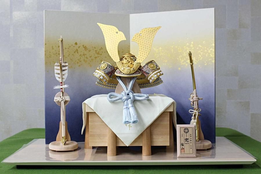 本ページの五月人形をご購入いただきますと、ご購入特典として、お手入れ用の「毛バタキ」と「手袋」、端午の節句をモチーフにした「オルゴール付き写真立て」、節句パーティーで五月人形と一緒に着飾れる「鉢巻&陣羽織」を進呈しております。特典について詳しくはこちら