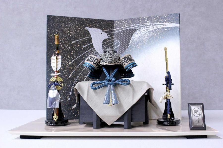 毛バタキと白手袋のお手入れセットを進呈します。五月人形を飾ったりするときは、手袋をご使用下さい。収納するときは、毛バタキで十分ほこりを払ってからおしまい下さい。