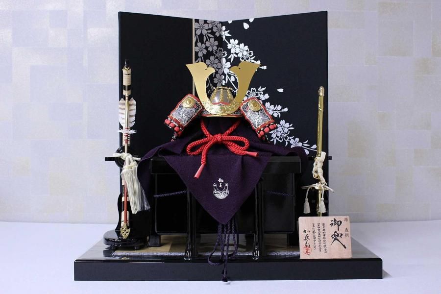 本ページの五月人形をご購入いただきますと、ご購入特典として、お手入れ用の「毛バタキ」と「手袋」、端午の節句をモチーフにした「オルゴール付き写真立て」、節句パーティーで五月人形と一緒に着飾れる「鉢巻&陣羽織」を進呈しております。特典について詳しくはこちら