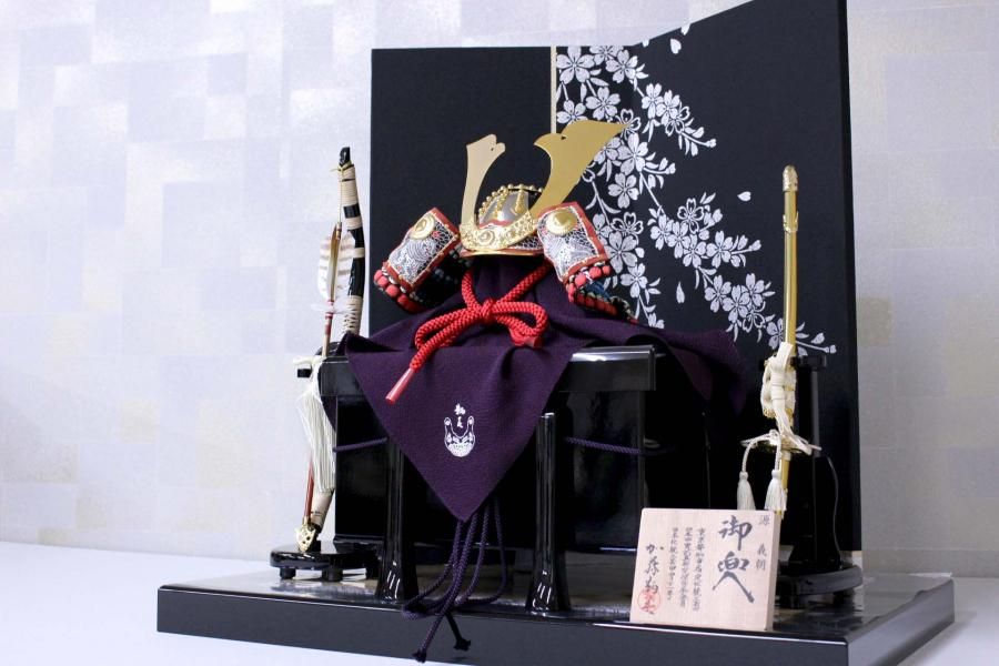 毛バタキと白手袋のお手入れセットを進呈します。五月人形を飾ったりするときは、手袋をご使用下さい。収納するときは、毛バタキで十分ほこりを払ってからおしまい下さい。
